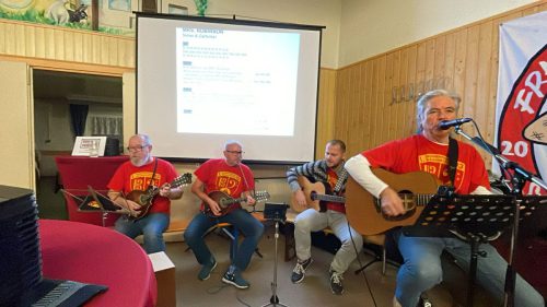Habe bis auf den ersten Abend alle Veranstaltungen miterleben dürfen. Tolle Idee und gute Liedauswahl. Kann man auch Lieder aus vergangener Zeit vorschlagen und diese auch mit Begleittext spielen lassen? Wäre vielleicht einen Versuch wert. Aber jeder, der vorschlägt, darf nur einen Wunsch äußern. Die Liedauswahl dazu treffen selbstverständlich die Musiker. Nicht dass diese Vorschläge überhand nehmen, oder Schwachsinn vorgeschlagen wird.
